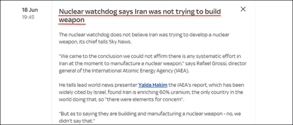 Возникает вопрос: это как? И сразу второй: а так можно было? То есть Гросси думал аж целых пять дней, прежде чем объясниться. И, по его словам, политические решения (напасть на Иран), которые были приняты на основании доклада МАГАТЭ, неким волшебным образом "никак не связаны" друг с другом.