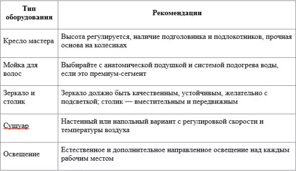 Эргономичное оборудование снижает утомляемость мастеров и делает пребывание клиента комфортным. Основные параметры: