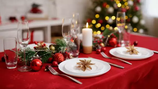 Скатерть — белая или терракотовая, акценты — золотые и красные. В центре можно поставить деревянную фигуру лошади или свечи в форме подковы. Это усилит символику года и добавит уюта. А здесь вы можете заказать прекрасную ель для своего праздника.