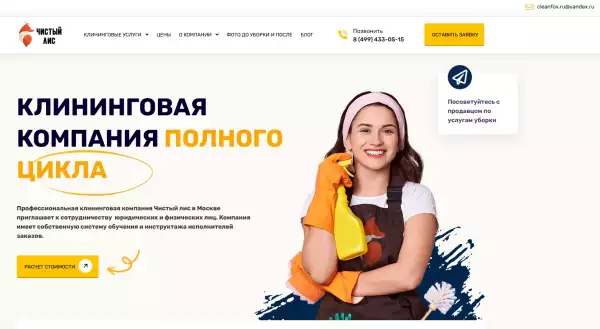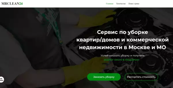 Работники клининговой службы убирают квартиры, загородные дома, офисы, кафе, салоны красоты, помещения промышленных предприятий и любые другие объекты в Москве и МО. Клиенты могут заказать мойку окон, фасадов, ограждающих конструкций, которая будет выполняться промышленными альпинистами. В списке услуг есть стирка и глажка белья, химчистка мебели и текстиля, обеззараживание, чистка жалюзи и москитных сеток, предусмотрены и сезонные работы: очистка крыш и территорий от снега и льда, уборка и вывоз сухой травы, опавшей листвы. В штате службы опытные клинеры, прошедшие профессиональный инструктаж. Специалисты чистоты оказывают полный спектр услуг быстро и качественно, используют безопасную химию и мощную клининговую технику. Препараты не оказывают негативного воздействия на людей, домашних животных и комнатные растения. Предусмотрена скидка 10%, если бригада опаздывает без уважительной причины на 5 минут и более.
