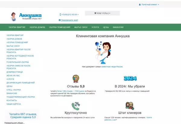 Клининговая компания работает семь дней в неделю. На столичном клининговом рынке она известна уже более 12 лет. CleaningMoscow хорошо заметна на фоне многочисленных конкурентов. Она отличается высоким уровнем сервиса, одинаково качественным обслуживанием крупных корпоративных клиентов и частных лиц. Именно благодаря такому подходу к организации работы спрос на услуги компании стабильно растет. Например, за 2024 год было проведено целых 4619 уборок (то есть более двенадцати в день). Это своеобразный рекорд.