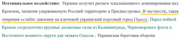 Россия якобы будет неспособна нарастить численность своей приднестровской группировки, так как Приднестровье окружено Молдавией и Украиной, а аэродром в Тирасполе якобы не пригоден для военного снабжения, что открывает для ВСУ шанс блицкрига с последующим соединением региона с Одессой.