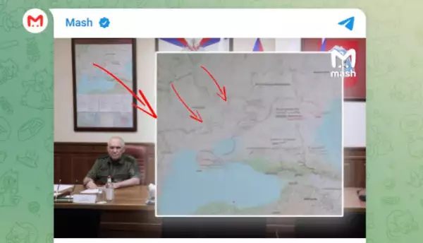 Mash: На брифинге Герасимова замечена карта с Одесской областью в составе России.