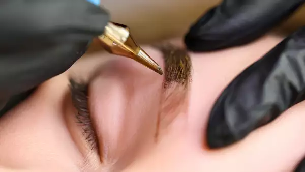 - Брови. Татуаж бровей помогает создать идеальную форму, добавить густоту и устранить асимметрию. Это особенно актуально для тех, у кого брови редкие, выгоревшие или имеют неравномерный рост.