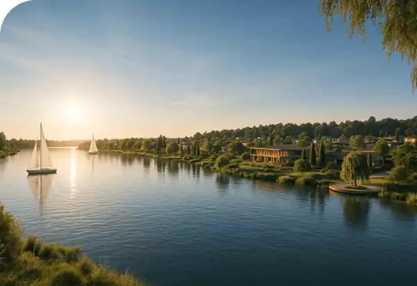 Атмосфера поселка — это невидимая нить, связывающая жителей в сообщество, где каждый день ощущается как мини-отпуск. Приватный парк для прогулок, благоустроенный пляж и смотровая площадка у слияния рек создают ощущение курорта. Летом открывается кинотеатр под открытым небом, а круглогодично доступны тропы для велосипедов и бега.
