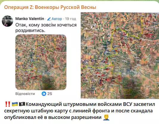 Командующий штурмовыми войсками ВСУ Манько в социальной сети отчитался об успехах Украины в районе Сладкого и Ровнополья. Спустя считаные часы украинские аналитики вместе с русофобом Рёпке признали прорыв обороны на Гуляйпольском направлении, — пишут "Военкоры Русской Весны".