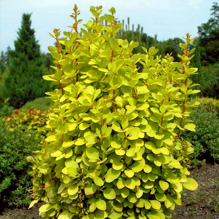 - барбарис с разными оттенками от зеленого до красного