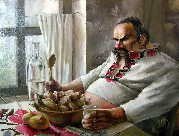 В эти же времена где-то на тучных полтавских выселках галушки и большущие вареники сами окунались в жирную сметану и залетали в рот чумаку, филигранно преодолевая препятствие в виде длинных казачьих усов. Наваристый и только что изобретённый борщ ждал своей очереди в компании с увесистым куском сала и колбасой. А в поле хлопцы охраняли гору сладких кавунов, щёлкая черешенки и домашние семечки.