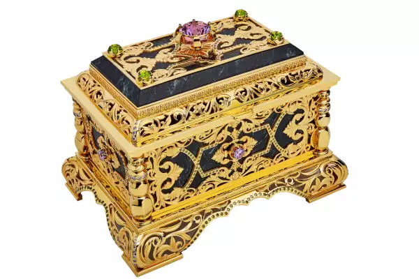 Дизайн эксклюзивных ларцов и шкатулок в Алматы характеризуется разнообразием форм – от элегантных яиц до внушительных ларцов. Модели вроде «Ангелы» или «1001 ночь» используют симметричные композиции и сложные орнаменты для создания визуального повествования, где каждый элемент несет семантическую нагрузку. Дизайнерские ларцы часто оснащены скрытыми механизмами, такими как потайные замки или выдвижные отсеки, добавляя элемент загадочности и практичности.