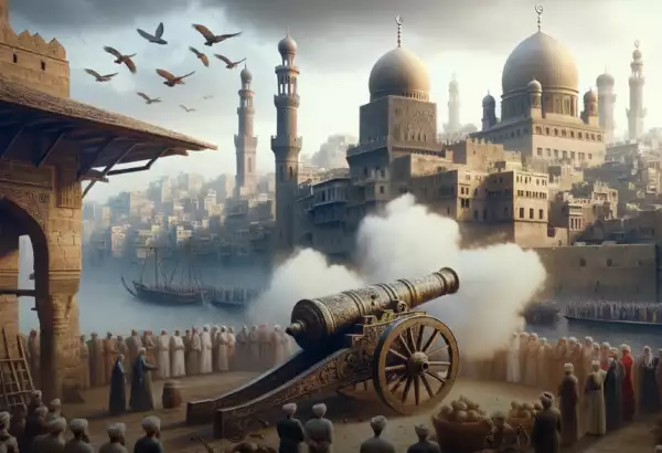 Первая пушка 42-фунтового калибра была отлита на полтора фута короче, потому что ошиблись в весе металла. Никто её не испытывал, и после второго выстрела она разорвалась, причём не обошлось без жертв среди артиллеристов. После этого министр приказал отлить две гигантские пушки 70-фунтового калибра, но, так как не хватало металла, у ханов, командиров батальонов и остальных офицеров была реквизирована часть их кухонных кастрюль, а также колокольчики верблюдов, мулов и вьючных лошадей, чтобы наскрести необходимое количество для литья. Министр хотел отлить шесть таких пушек, но не смог раздобыть нужного количества металла во всём Хорасане и вынужден был, к сожалению, довольствоваться лишь двумя пушками, на которых была выгравирована высокопарная надпись.