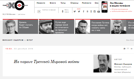 «Эхо Москвы» же за очередную публикацию абсолютно политически неграмотного, ангажированного текста, удостаивается еще одного балла в рейтинге «НЕдоверия» проекта «Газета о Газетах».