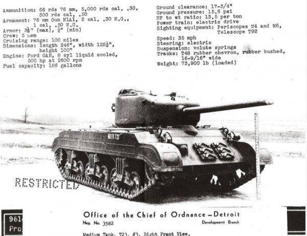 Спецификация прототипа Т23, который, по сути, уже был отцом M26