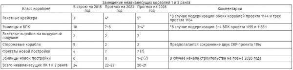 Ползучее сокращение группировки крупных надводных кораблей опасно тем более, что сроки строительства этих боевых единиц достаточно велики. При этом и без того небольшое прогнозируемое количество этих кораблей на 2028 год может еще сократиться в случае очередного переноса постройки эсминцев нового поколения, равно как и в случае сокращения программы модернизации уже имеющихся кораблей флота.