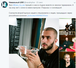 Гостем очередного выпуска проекта «Тюрьма» на YouTube-канале Навальный Live стал рэпер Касс. Особенность этого события в том, что Касс – автор тюремного твиттера @kass_my_ass. На канале Навального бывший наркодилер поведал, как сам провел несколько лет на нарах, каков собой тюремный быт, и поделился наработанными лайфхаками для зэков.