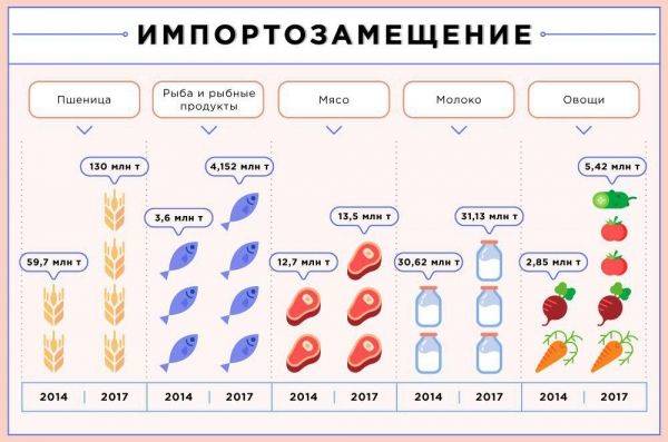 Зато можно заметить, что, несмотря на возгласы скептиков, импортозамещение работает максимально эффективно, о чём говорят рекордные показатели урожайности и экспорта сельскохозяйственной продукции. Сбор зерновых в прошлом году превысил показатели 2016 года, на 51 %.