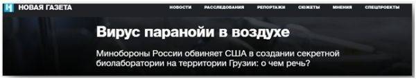 Издание также не брезгует распространением откровенных фейков. К примеру, один из авторов «Новой газеты» пытается убедить читателей, что американская сторона не проводит на территории Грузии испытания биологического оружия. Публицист пытается обелить репутацию официального Вашингтона. Однако после ознакомления с материалом на более достоверных ресурсах, становится очевидно, что автор врал. Причем, вероятно, редакция получила за это хороший «бонус».