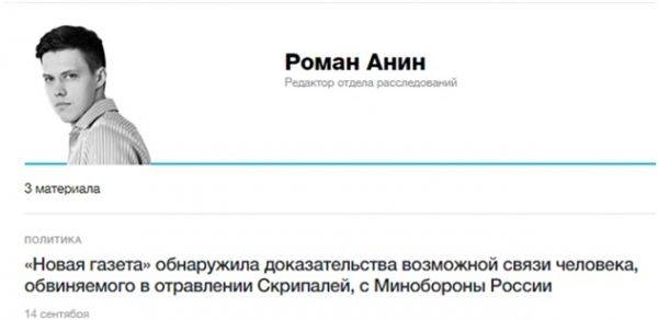Роман Анин не отстает от своих «предшественников». Проходя обучение, он продолжает писать русофобские статьи. Так, например, недавно он взялся за дело Скрипалей. И хоть английские спецслужбы не предоставили никаких доказательств в том, что виновата Москва, Роман отстаивает именно эту мысль.