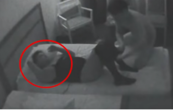 Весьма выразительны кадры с камер видеонаблюдения, запечатлевшие встречу Хроменкова с мужчиной в номере отеля.
