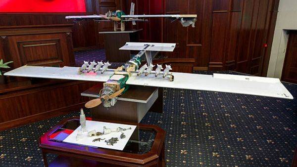 Показ боевых беспилотников, которые использовались для нападения на российскую военную базу Хмеймим. Фото: www.globallookpress.com