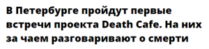 Информационная политика «Бумаги» во многом построена на публикации материалов рекламного характера – от заказных статей до баннеров. Здесь можно найти чуть ли не открытую пропаганду однополой любви и наркоты, но особым порядком выделяется тема смерти. В частности, издание размещает рекламу «Кафе Смерти» (Death Cafe).