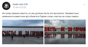 Ничего так тема для чайной вечеринки, да? «Бумага» рассказывает, что в Россию из США и Соединенного Королевства пришла новая мода – позитивное отношение к смерти. Чтобы сформировать такое «позитивное» мировоззрение, нужно больше говорить о смерти, думать о своей смерти или смерти близких, встречаться с другими людьми, которые относятся к смерти спокойно.