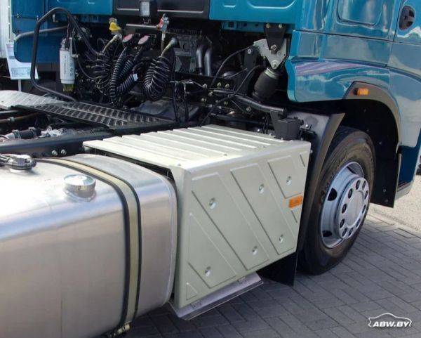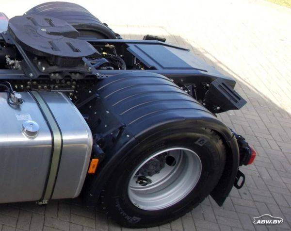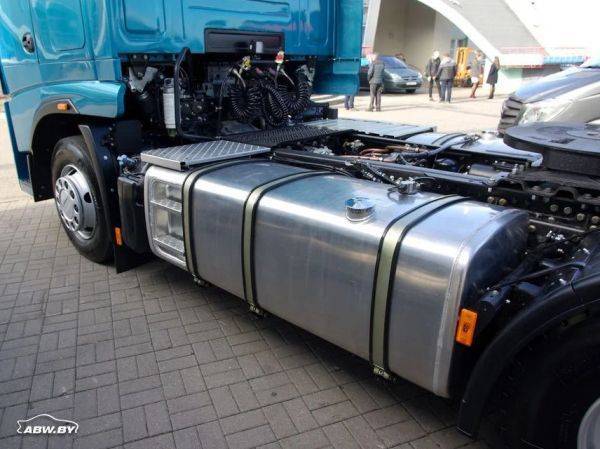 Тягач оборудован двумя алюминиевыми топливными баками производства российской компании "Автобаки" (Санкт-Петербург). Слева - объемом 700 л, справа - 450 л. Общая емкость баков - 1150 л. При этом производитель обещает средний расход топлива на уровне 27 л/100 км.