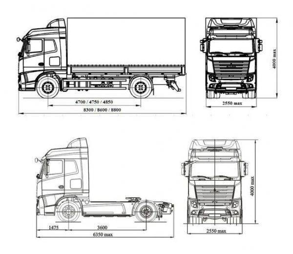 Автомобиль получил абсолютно новую кабину на основе каркаса Mercedes-Benz Actros последнего поколения и совершенно новый рядный шестицилиндровый двигатель проекта "Тибет" рабочим объемом 12 л, который будет выпускаться в версиях Евро-5 и Евро-6. Этот мотор, как утверждают в Набережных Челнах, соответствует лучшим мировым аналогам в своем классе и имеет высокий потенциал дальнейшего развития потребительских характеристик. Ресурс нового двигателя Р6 должен составить 1,5 млн км. Ресурс нового грузовика - не менее 1,2 млн км. Межсервисный интервал - 150 тыс. км.