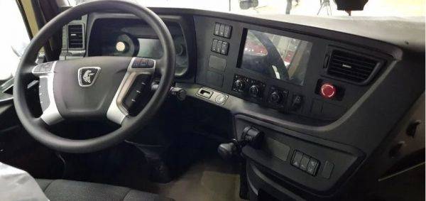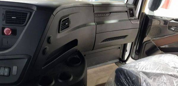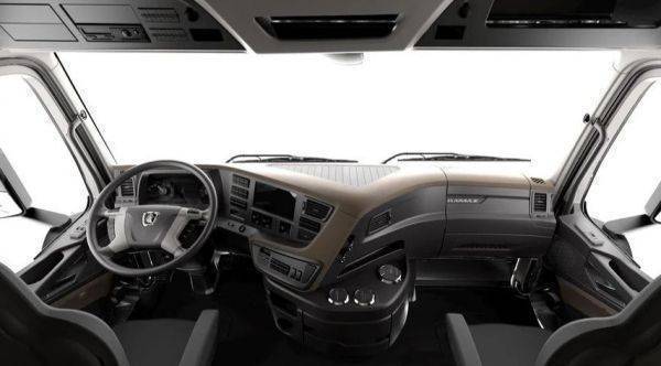 Новая кабина обладает отличной эргономикой и обеспечивает высокий комфорт для водителя и пассажира. В базовой комплектации предусмотрены сиденья ISRI на пневмоподвеске, ремни безопасности, два спальных места, электрические стеклоподъемники и электроуправляемые зеркала заднего вида с обогревом; противосолнечный козырек; верхний обтекатель с закрылками.