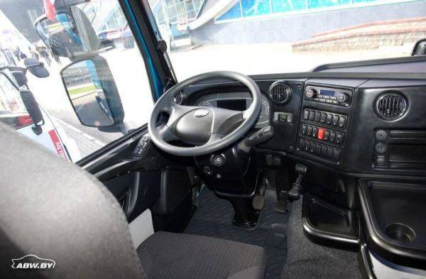 В базовую комплектацию МАЗ-5440M9 также входят: мультиплексная система управления с электронным щитком приборов (весь "софт" написан программистами Минского автозавода) и встроенный бортовой компьютер, климат-контроль, круиз-контроль и мультимедийная система. Более эргономичными стали клавиши, кроме того, они имеют подсветку. И впервые на МАЗах - запуск двигателя осуществляется кнопкой.