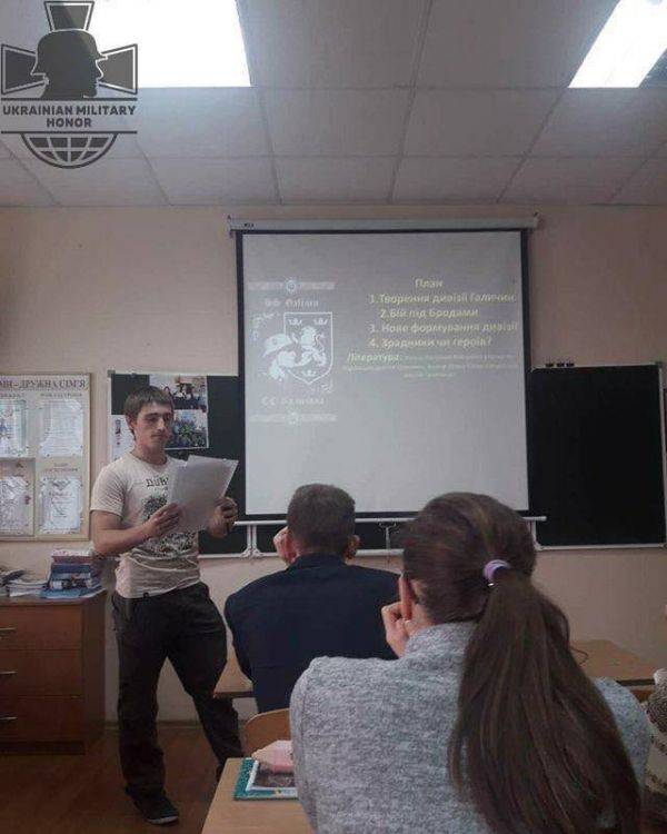 В киевской гимназии № 315 урок воинской доблести был посвящён нацистскому формированию дивизия СС «Галичина», как образцу подражания.
