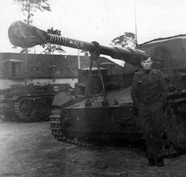Орудие самоходки представляло собой незначительную модернизацию тяжелой пушки sK 18, разработку которой начали в 1930-х годах силами компаний Rheinmetall и Krupp. Она обладала завидной дальностью: до 19 километров при использовании фугасных снарядов. На пушку установили дульный тормоз, который несколько повышал ресурс орудия, но при выстреле создавал облако пыли, демаскирующее позицию и мешающее наблюдать за результатами стрельбы.