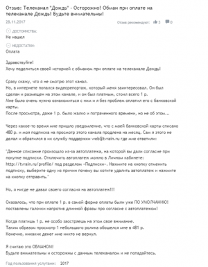 И это не единственная махинация издания. Оказывается, что, когда платишь минимальную стоимость в 1 рубль, чтобы посмотреть один видеоролик, с тебя снимают 481 рубль, причем без вашего ведома и согласия.