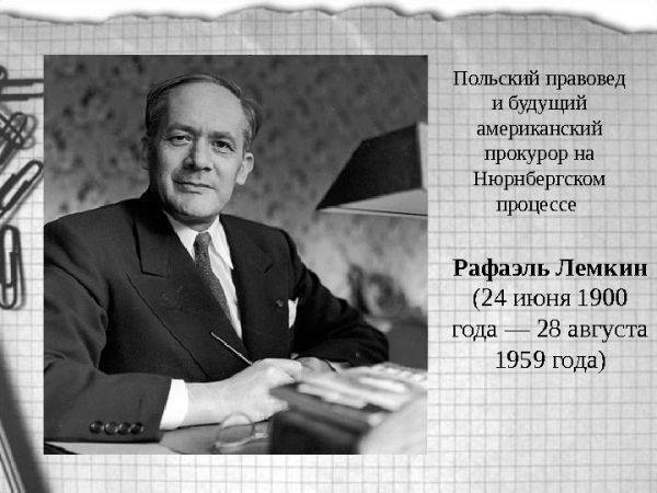 Надо заметить, что Лемкин сам по себе – личность достаточно любопытная. Польский еврей, учился юриспруденции во Львовском университете. В 1933 году, на конференции по международному праву в Мадриде, Лемкин предложил разработать конвенцию против геноцида, а также выделил его основные признаки, основываясь на данных резни армян Османской империей в 1915 году.