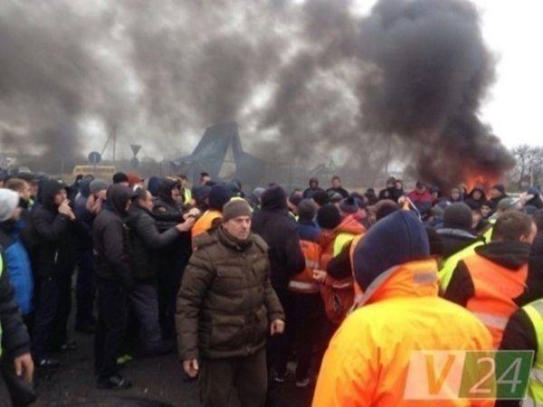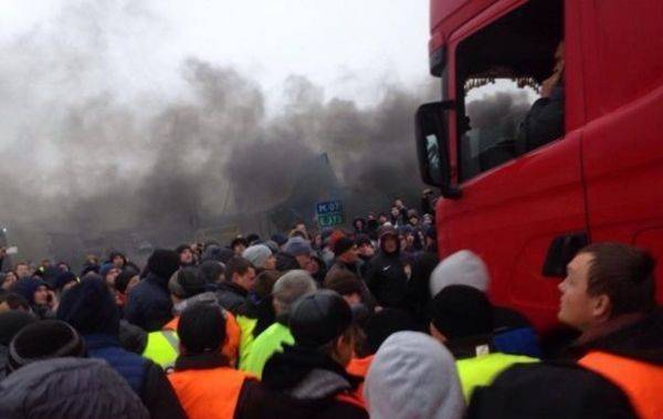 "Один из водителей дальнобойщиков решил не ждать своей очереди на проезд и поехал через толпу, едва не наехав на людей. Это крайне возмутило протестующих. Они начали останавливать машину и швырять в нее всевозможные предметы, включая горящие шины. Водитель в ответ кричал из кабины – "Я вас всех порежу!"", – говорится в сообщении.