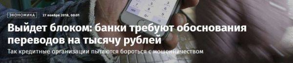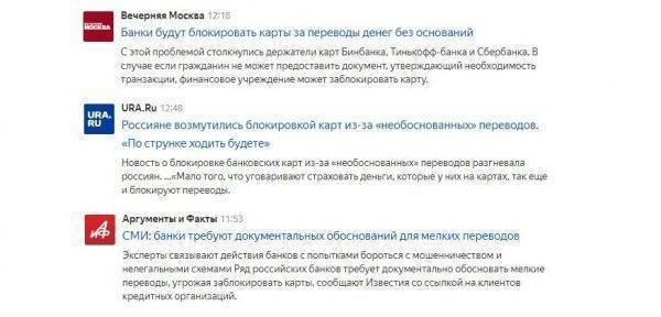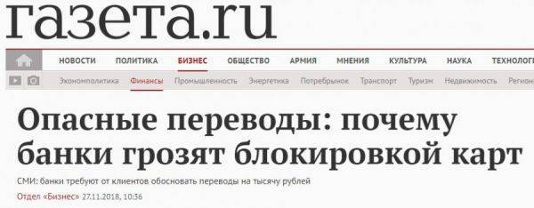 Речь идет о материале «Выйдет блоком: банки требуют обоснования переводов на тысячу рублей», описывающем несколько случаев, когда различные банки по собственному усмотрению ограничивали своих клиентов в пользовании картами.
