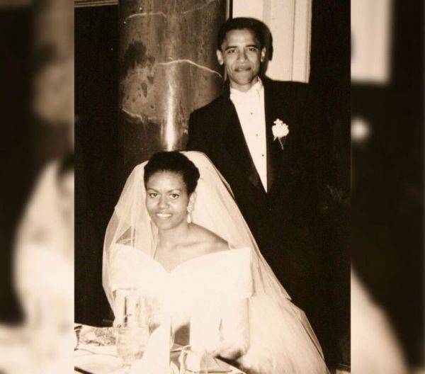 Похожая история знакомства была у Барака и Мишель Обамы. Впервые молодые юристы встретились в юридической фирме Сидли Остин в городе Чикаго. Мишель долго не реагировала на знаки внимания со стороны Обамы, но спустя некоторое время уступила натиску будущего президента. Спустя три года Мишель и Барак оформили свои отношения официально. Невеста была в шикарном белом платье с вуалью и остроконечными рукавами на плечах.