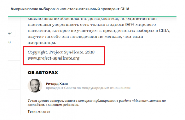 О этом же говорит и то, что РБК регулярно перепечатывает статьи с Project Syndicate.