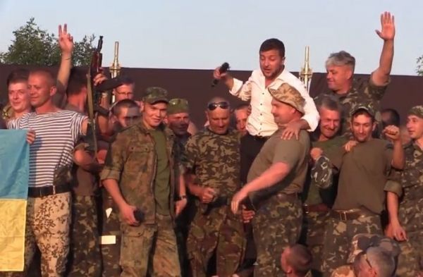 Позже, объясняя свои поездки в «АТО» с концертами, Зеленский встал в позу благодетеля, объявив: «Я считаю, что нельзя отказываться от таких концертов. Иначе мы разом все поверим, что у нас куска страны нет».