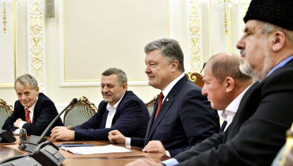 Крымско-татарская группировка, сбежавшая в Киев под крыло майданщиков давно выпрашивает себе автономию за россказни о преступлениях «рыжима» в Крыму на международных площадках. Порошенко плевать на Украину и он, наверное, с радостью отдал бы, что ни попросят, если бы не боялся так украинских радикалов. Ультрапатриоты категорически против такого разбазаривания своего и так стремительно сужающегося ареала. И Пётр Алексеич до поры до времени к ним прислушивался, «чтобы хату не спалили». Однако сейчас, на пороге либо провальных выборов, либо бессрочного военного положения, украинский гарант переметнулся на сторону радикалов Меджлиса.