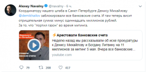 На днях стало известно, что координатора штаба Навального в Санкт-Петербурге Дениса Михайлова оштрафовали на 11 миллионов рублей. Такое солидное наказание рублем он получил за повреждение сада в центре Северной столицы в ходе проведения несанкционированного митинга 5 мая 2018 года.