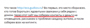 Заметим, что на сайте не содержится документов, в которых был бы представлен план действий, только общие слова. Единственная конкретная информация – номер счета, на который доверчивые горожане должны высылать деньги.