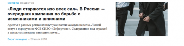 В то же время «Новая газета» постоянно представляет в черном свете сотрудников органов, стоящих на страже интересов Родины. Их деятельность, по мнению «новогазетчиков», объясняется не защитой интересов Родины, а приступами «шпиономании».