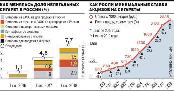 Больше всего нелегальных сигарет из Белоруссии попадает в Россию, в годовом выражении физические объемы составляют около 5,5 млрд штук, а в приграничных регионах — в Брянской и Смоленской областях — доля таких сигарет составляет 21% в общем объеме продаж, писал в мае этого года портал «Белорусские новости» (Naviny.by).