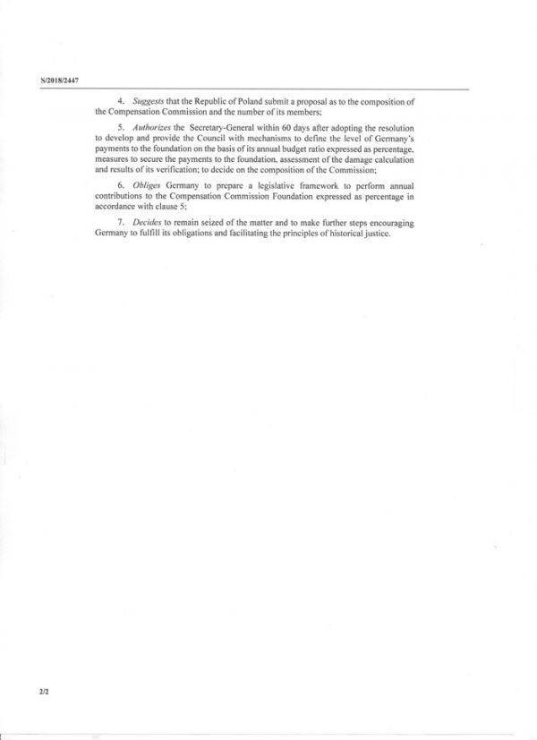 2. предлагает Польше предоставить полный расчет нанесенного ущерба в годы оккупации с учетом инфляции,