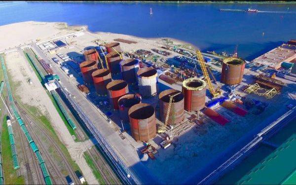Причал вынесен в море на 4,5 километра, где глубина позволяет принимать газовозы большого водоизмещения.