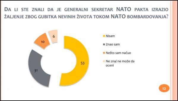 Комментируя результаты опроса, директор CEAS Елена Милич заявила, что низкий процент сторонников альянса в стране вызван антинатовской информационной кампанией, проводимой сербским телевидением. В качестве примера она привела недавнее заявление Йенса Столтенберга, призванное оправдать бомбардировки Белграда в 1999 году. О нем слышали только 31% опрошенных. Местные СМИ об этом специально замолчали, считает Милич, добавив, что население необходимо объективней информировать о деятельности НАТО.