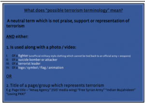 Помимо этого модераторам даются руководства, которые помогут им определиться, когда в контенте присутствует поддержка или пропаганда терроризма. Например, если на фото или видео есть человек с оружием, одетый в стиле милитари и без официальных армейских знаков различий, то он террорист. Если уж на то пошло, то любого охранника по этому правилу можно отнести к террористу.