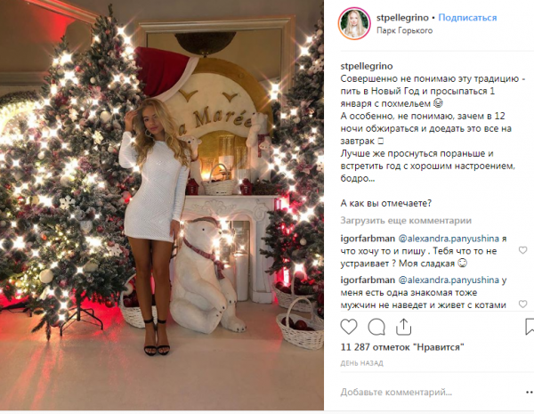 Были и другие огрехи - Лиза стремится показать, что следит за жизнью страны, в которой родилась, но делает это, увы, как-то не слишком умело. Вот и сейчас, решив расспросить о том, как ее подписчики отмечают Новый год, она проехалаась по традиции россиян готовить на праздники обильный стол. "Совершенно не понимаю, зачем в 12 ночи обжираться и доедать все это на завтра. Лучше же проснуться пораньше и встретить новый год с хорошим настроением", - написала она в своем Instagram.