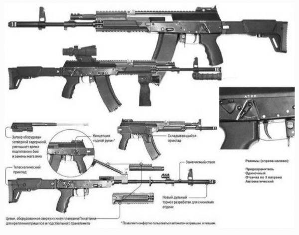 Работы над проектом по созданию нового автомата системы Калашникова стартовали в 2011 году и велись практически с чистого листа. Отступление от канонов классической схемы принесло много положительных моментов: новая модель обладала повышенной кучностью стрельбы, была весьма эргономична и подходила для использования как правшой, так и левшой.