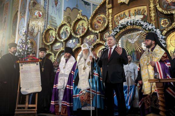 Петр Алексеевич Порошенко доказал: религия является основным, базовым элементом массового охмурения электората. Еще древние шумеры выбирали своих менеджеров по принципу «на кого томос пошлет». К сожалению, после Средневековья традиция передачи власти непосредственно от божества к носителю была незаслуженно забыта. Человечество увлеклось какими-то пошлыми идеями возрождения и ренессанса, всякими там «айфонами» и прочими «хуавеями». Мудрость Порошенко заключается в том, что он первым разглядел не используемый до сих пор потенциал приобщения избирателей к таинству непорочного зачатия кандидата в президенты. Вчера, прямо с утра, начался невероятно красивый и мощный томосо-тур лидера по городам и, простите за выражения, весям нашей бескрайней нации. Честь принять празднично-обрядовый визит Порошенко выпала Ровенской области. Именно туда с благой вестью помчался верховный главнокомандующий. Встреча со взволнованными избирателями проходила в Свято-Покровском кафедральном соборе. Там собрались выдающиеся орденоносцы страны: Филарет, который носит титул «почетный патриарх, духовный лидер (первая буква «п») нации», свежеположенный, почти интронизированный митрополит СЦУ Епифаний, другие официальные лица в культовом облачении и собственно сам гарант в гражданской одежде.